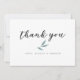 Elegant och enkelt bröllop-tack för ett mallkort med en illustration av en grönt löv. I den moderna texten ovan står det "tack". Standardmeddelandet på baksidan som är adresserat till familj och vänner kan enkelt redigeras.