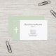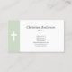 Ett enkelt och elegant affärskort med grönt på den lämnat med ett vitt kor. Ett mycket nyktert sätt att kommunicera för en pastor, en kyrka, en kristen gemenskap etc.