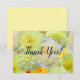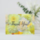 Mångsidigt platt eller vikt tackkort för tacksamhet efter bröllopet, med en livfull, glad design med gula och krämfärgade akvarellblommor. Designad för att matcha den eleganta välvda inbjudan, är det ett enkelt, vackert tillägg till hela samlingen (Inbjudan, RSVP, Spara datumet och tomt anteckningskort). Tomt på baksidan eller insidan för ett personligt, handskrivet meddelande.