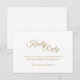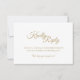 Detta enkla svarskort för bröllopswebbplatsen med guld kalligrafi ger en elegant lyx men modern känsla till både ett minimalistiskt och mer formellt bröllop. Den avslappnade kalligrafin ger en antik känsla, medan den klassiska neutrala designen kan kombineras med alla unika aspekter av din bröllopsfirande. Kombinera både traditionella pappersinbjudningar och dra nytta av webbplatsernas bekvämlighet genom att använda detta inklusionskort.