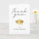 Ett enkelt och modernt tack från studenten för att ni skickade ut dem som gratulerade er, närvarade vid er studentfest, gav er gåvor osv. Det står "tack" på toppen i ett modernt typsnitt med ett enkelt guld-lock under. Ändra texten i kortet om du vill. Anpassa produkten genom att lägga till ditt namn.