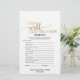 Det här enkla guld-kalligrafispelet "vad som finns i din plånbok" är perfekt för en möhippa i chicen. Spelkortets framsida har "hur bra du känner till bruden" och kortets baksida innehåller "vad som finns i din handväska". Den klassiska romantiska designen har faux guld-folie-typografi och ett underbart gyllene hjärta. Anpassa kortets framsida med briderna namn och möhippa. Obs! Den här designen har inte äkta guld-folie. Det är en grafik av hög kvalitet som framställs som guld-folie.