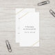 Modern geometrisk lodrät affärskort med två guld-linjer, en över den översta lämnat och en över grund-högerna över en vit bakgrund. I mitten står ert namn och er titel. På baksidan finns din kontaktinformation. En minimalistisk utformning som fortfarande framträder som chic och snyggt. Denna utformning är underbar för många yrken, bland annat en insida-designer, hårstilist, makeup artist med mera.