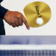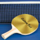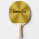 Den här pingpongpaddeln från guld har text i ett svart skript. Texten kan redigeras eller tas bort. Guld-utseendet är inte av folie.