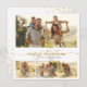 Simple Modern Elegant Calligraphy Script 4 Photo Collage julkort. Det här festliga, minimalistiska multifoto-christmas-kortet har söt fyra (4) fotokollage, en "God jul" hälsning-text som är skriven i ett handskrivet hakskript i svan i guld och vitt. På baksidan av det fördefinierade meddelandet och glitter konetti-hörnen. Den här festliga Anpassningsbarna Fotojulkort är ett underbart sätt att påminna de kära om att du tänker på dem den här vinterJulhelgen.