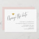 Enkel och modern "ändra datum"-annons med ett sött guldhjärta och elegant kalligrafi samt minimalistisk typografi, i svart och vitt, med en redigerbar enfärg på baksidan (klicka på "anpassa ytterligare" för att använda mallredigeraren för att välja en ny färg eller lägga till mer text).