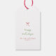 Enkla minimalistiska Juletiketter med ett enda hand plockade rött blanksteg med redigerbar rubrik "glad helg" i handskrivet stil-teckensnitt i grönt. Anpassa med namnen. Baksidan är en mönster av röda och grönt.