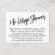 Om du är värd för en visning som inte är en gåvbrytning för att bli brud, kan du välja det här enkla, mångsidiga kortet. Med hjälp av ett modernt, handskrivet skriptteckensnitt lade jag först till en huvudgrafik med texten "Ingen figursättning" på framsidan och "Till" och "Från" på presentsidan för märkrn. En mall fält har upprättats för att ge gäster instruktioner som inte täcker in deras närvaro. Var vänlig och ändra ordalydelsen vid behov. Det sans-serif-teckensnitt som används för instruktionerna kan ändras efter behov. 105