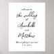 Välkomstskylt för Bröllop som är minimalistiskt. Välkomna gästerna med detta rena och underskattade välkomstskylt från bröllop. Utformningen är endast inriktad på texten för att få ett tidslöst utseende och ett elegant. Det översta står "Välkommen till Bröllop av..." med bruden och brudgummens namn på framträdande plats i mitten. "Vi är så glada att du är här!" lägger till ett varmt och välkomnande budskap, där bröllop-datumet visas elegant i grund. Med det här enkla anpassadet kan du justera texten så att den stämmer överens med bröllop-temat. Perfekt för ceremonier och mottagningar i bröllop skapar detta minimalistiska välkomsttecken en modern och sofistikerad introduktion till er speciella dag. Finns antingen i en utskriftsversion eller så kan du köpa som en nedladdningsbar digital fil att skriva ut i hemmet eller lokalt.