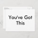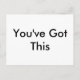 Ett enkelt och enkelt meddelande: "Du har Har det här". Meddelandet kan ändras till vad du vill. Om du använder ett sans-serif-teckensnitt utan kullarna, i svart över vitt, kan du också ändra typsnitt och färg. Gör det här vanliga vykortet till ditt eget. Eller skicka det som det är, för en underskattad effekt.