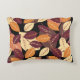 En enkel illustration av löv i kakaobunt, orange och blek gult mot svart bakgrund.