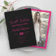 Enkel Hot Pink Svart Foto Söt 16 Sexton Inbjudningar