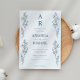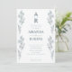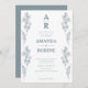 Inbjudan era gäster med tidlös elegans med den här enkla blåa blommigtens bröllopsinbjudan. Med lodrät botaniska konst på båda sidor och minimalistisk serif-typografi balanserar den här mallen modern raffinering med klassisk skönhet. Perfekt för bröllop under en säsong