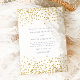 Chic faux guld konetti-bröllopsinbjudan har en elegant faux konetti gräns och är helt enkelt klassisk med beröring av elegant blue calligraphy script typography.