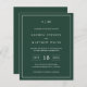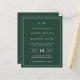 En enkel inbjudan till budgetbröllop med en modern utformning av eleganten med dina två brev monogram överst, en fet datumlayout och dina detaljer omgivna av ett tunt gräns. All inslag är vit över grönten och kan ändras i designredigeringsverktyget i verktyg. En chic och snyggt som är underbar för ett minimalistiskt par.