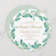Botaniskt eukalyptus Löv med Söt Guld Färg skript på White Front and Light Sage Grönt Back of Card Möhippa Brunch Call.