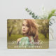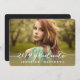 Perfektens fotokort bjuder in din familj och vänner till din dotters studentfest. Enkel| Inbjudan till Studentfest för 2014. Design av Elke Clarke © för MonogramGallery på Zazzle.com. Lägg till ditt eget foto och din egen text. En enkel textövertäckning med vitt skript med ord "2014 Student" skrivs ut på framsidan med en liten guld kombieffekt. Lägg till inbjudningstexten på baksidan av kortet med ett modernt vitt teckensnitt på en utskriven fotoeffekt av en svart krita. Andra tillgängliga stilar och färger.