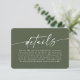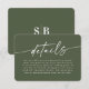 Minimal enkel Solid Färg Monstera Grönt Bröllop-infogningskort. Den här moderna informationen om bröllop eller möhippa för extra är enkel och elegant med chic solid färg-bakgrund och trendig namnteckning skript calligraphy font. I Mörken Forest Monstera Grönt Colorway. Dessutom har du ett enkelt monogram på baksidan. Den minimala Solid Bröllop-samlingen gör bröllop minnesvärt och vackert! För att se mer, sök efter Chic Paperies samlingar i bröllop 2022 för att se alla de trendmönster som finns och bröllop färg för detta år.