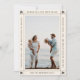 Denna moderna julkortdesign har en layout med helbildsformat som ramas in av elegant typografi och minimalistiska vintergröna ikoner. En ren krämfärgad ram sveper runt ditt favoritfamiljefoto med utrymme för en glädjefull hälsning längs toppen, era namn längs botten och ett hjärtligt säsongsmeddelande som löper ner längs varje sida.