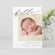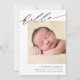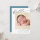 era glatta nyheter med detta enkla, moderna födelsetillkännagivande. Kortet har ett skript för söt som läser "hej" överst. Lägg till foto, namn, födelsestatus och namn under kalligrafin. Baby namn är skrivet i blått, men det kan lätt ändras om man föredrar ett annat färg. Bakgrunden färg på kortets baksida är redigerbar (visas som blå). Du kan också lägga till ytterligare foton och ett anpassningsbar-meddelande på baksidan om du vill.