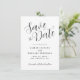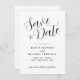 Klassiskt bröllop spara datum-kort för svartvit elegant med minsta möjliga utformning av ett rostiskt calligraphy-skript. ++++++++++ Lämpligt för alla säsonger och teman. ++++++++++ Enkel att anpassa med din text!