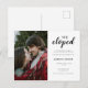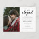 Berätta för världen att du har gift dig i detta enkla minimalistiska bröllopsannonsering i kalligrafisk stil som säger "Vi flydde". Anpassa den med din egen bröllopsfest detaljer och parfoto.