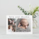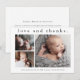 En söt 3-foto collage födelseannonsering och tack-kort med en enkel modern typ och 3 bilder på framsidan. Baksidan är ett postkort med ett stort fullständigt namn i headern och personligt meddelande från familjen. Klicka på redigeringsknappen för att anpassa denna design med dina foton och detaljer.