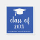 Minimalistisk studenten-napkin med en enkel och klassisk design med en gradersockel och "årsklass" i ett tjockt skript tillsammans med student namn i vitt över en blå bakgrund. Bakgrunden färg kan ändras till valfritt färg. Ett traditionellt stil med en modern fläkt till en flicka student. Dessa pappra servetter är ett underbart sätt att göra studentfesten personligt rörd.