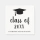 Minimalistisk studenten-napkin med en enkel och klassisk design med ett gradlock och "årsklass" i ett tjockt skript tillsammans med student namn i svart över en vit bakgrund. Bakgrunden färg kan ändras till valfritt färg. Ett traditionellt stil med en modern fläkt till en flicka student. Dessa pappra servetter är ett underbart sätt att göra studentfesten personligt rörd.