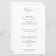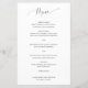 Klassisk vit bröllop-meny med sidhuvudet i ett känsligt skript. En enkel layout utan någon grafik gör detta till en elegant och tidlös design, perfekt för ett formellt bröllop. Dessa billigt bröllop-menyer trycks på lakan av papper för ett budgetvänligt alternativ.