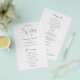 Klassiskt vitt bröllopsprogram flygblad med "bröllopet av" i ett delikat skrivstil. Använd mallen för att enkelt lägga till er ceremoniföljd på framsidan och er bröllopsfest och tackmeddelande på baksidan. En enkel layout utan grafik gör detta till en elegant och tidlös design, perfekt för ett formellt bröllop. Dessa billiga bröllopsprogram är tryckta på pappersark för ett budgetvänligt alternativ.