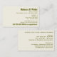 Det här enkla, universalformade, mörk gulaktiga grönten står här med en elfenbensvit bakgrund och har ett starkt textformat som är justerat för högerna med öga-och fet överkant (namn) och grund linjer. Det är särskilt väl lämpat för studenter, frilansare, småföretag eller sidokontor som är en enda person och professioneller som är egenföretagare som kan omfatta alla från revisorer, bartender-företag och konsulter till advokater, notarier, privata tutors, verkliga investerare i gods, terapeuter, utvecklare av webbarna och Zydeco-flygläkare. — Klicka på länken Anpassa ovan för att fylla i informationen på båda sidor. På framsidan finns grundläggande information (med förslag på fält för den provmatematikfunktion som visas här) som du kan blanda och matcha som du vill. Linjen grund kan användas på flera olika sätt för kreativ, t.ex. en slogan eller tagg, en kort beskrivning av dina tjänster, din föredragna kontaktmetod eller ett anrop till åtgärd. — Baksidan är en flexibel höger-justerad layout där du kan inkludera spelar ingen roll tilläggsinformation som du vill ha. För den exempelmaturaryrke som visas här visas en beskrivning av tjänster, drifttimmar och handledning av subjekt, men du kan enkelt ersätta spelar ingen roll annan information som kan vara av intresse för målgruppen. — Observera att den här klassiska designen antingen kan användas som den är eller så kan den vara en utmärkt utgångspunkt för att skapa ditt eget anpassade affärskort med Zazzles kraftfulla designprogram verktyg (som du kan få åtkomst till genom att klicka på länken Anpassa ovan och sedan "Klicka för att anpassa ytterligare"). Det går att redigera färg för både text och bakgrund, typsnitt och marginaler kan töjas efter behov, och det finns också mycket tomt utrymme så att du kan inkludera dina egna bilder.