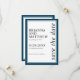 Den här enkla klassiska bröllop spara datum-designen har en marin blå dubbla gräns med vit mittbakgrund. Textparen är skarpa och elegant med tonvikt på namnen för bruden och brudgummen som visas i stor utskrift. Färg-systemet är ett fantastiskt val för kustlandskap i bröllop eller på destinationer och andra platser som valts ut. Det enkla klassiska stil är alltid ett bra val. Observera att det finns en textmall på baksidan av kortet för valfri text (t.ex. webbplatsen bröllop eller annan önskad text). Om du inte vill att någon text ska skrivas ut på kortets baksida ska du ta bort den exempeltext som visas i designmallen före beställningen.