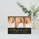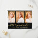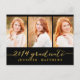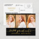 Trendig ett modernt fotovykort som bjuder in din familj och dina vänner till din dotters studentfest. Enkel kollage | Inbjudan till studentfest för 2014. Utformning av Elke Clarke © Besök vår butik www.zazzle.com/monogramgallery* för mer design och stilar. En enkel guld-folie av typografi med handskrivet skript, teckensnittsöverlägg (utskriven fotoeffekt) med ord "2014 Student" med tre fotosamlingskonstruktioner. Ersätt exempelfoton med egna. Svart och guld färg. Annat stilar och färg tillgängligt.