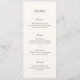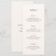Modern bröllopsmeny med en enkel design med en kombination av ett modernt sans-serif-teckensnitt, ett elegant handskriftsmanus och ett kursivt teckensnitt.