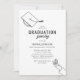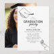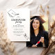 Minimalistiska examensfestinbjudningar med en enkel linje teckning av en kvinnlig student hand och examensmössa, ett foto på baksidan och en modern textmall som är enkel att anpassa.