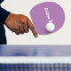 Den här lavendelpongpaddeln har text i ett vitt skript. Texten kan redigeras eller tas bort.