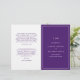 Enkelt vikt Bröllopsprogram med en modern utformning av eleganten med två inledande monogram tillsammans med dina detaljer omgivna av ett tunt gräns på framsidan. Insidan har din bröllopsfest på den lämnat sidan och din ceremoni på högerna. All inslag är i royal lila och vitt och kan ändras i verktyg för designredigering. En chic och snyggt som är underbar för ett minimalistiskt par. Dessa bröllopsprogram i billigten trycks på lakan av papper för ett underbart budgetvänligt alternativ.