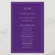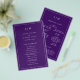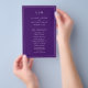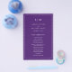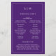 En enkel sjudtonsfluga i royalets lila budgetplan med en modern utformning av eleganten med två brev monogram överst och dina detaljer omgivna av ett tunt gräns. Typsnitt och färg kan ändras i designredigeringsverktyget för verktyg. Framsidan har din ceremoni och baksidan har din bröllopsfest och tack för ditt budskap. En chic och snyggt som är underbar för ett minimalistiskt par. Dessa bröllopsprogram i billigten trycks på lakan av papper för ett budgetvänligt alternativ.