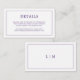 Ett enkelt litet elegant i bröllop-höljet med en modern utformning med detaljerna omgivna av ett tunt gräns och ditt monogram på baksidan. All inslag i designläge är i lila och kan ändras i verktyg för designredigering. En chic och snyggt som är underbar för ett minimalistiskt par. Använda dessa djurutrymmeskort för att ge anvisningar och andra viktiga uppgifter som dina gäster kan behöva känna till, t.ex. hotellrum, parkering, pendelinformation osv.