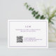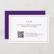 Ett enkelt kort för Bröllop OSA med en modern utformning av eleganten med två brev monogram tillsammans med din anpassningsbar QR-kod omgiven av ett tunt gräns. All text är royalets lila över en vit bakgrund och kan ändras till valfritt färg genom att klicka på knappen "anpassa". Ett Bröllop-svarskort för chic och snyggt som passar bra med vilken stil som helst av bröllopsinbjudningssviten.