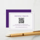 Kortet för ett enkelt hölje på Bröllop-webbplats med en modern utformning av eleganten med anpassningsbarnas QR-kod tillsammans med ditt meddelande omgivet av ett tunt gräns. All text är royalets lila över en vit bakgrund och kan ändras till valfritt färg genom att klicka på knappen "anpassa". Ett chic- och snyggt Bröllop-inhägnadskort som passar bra med vilken stil som helst av bröllopsinbjudningssviten.