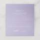 Ett enkelt bordkort för en lila brölloppsfärgskala. Det är bara vita linjer och kalligrafi på en lila (ljuslila) bakgrund.