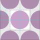 En mönster av lilaska cirklar finns på vit väv.