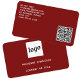 Ett enkelt och professionell affärskort med företagets logotyp på framsidan och din QR-kod och information på baksidan. Minimalistisk och elegant som representerar ditt varumärke. Modern mörk burgundy red färg, som kan ändras för att matcha ditt varumärke. Berätta om du behöver hjälp med ändringar i färg.