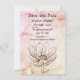 Detta enkla uttalande från bröllop spara datum bröllop visar teckning på en lotus blomma på rosa och guld marmorerad bakgrund.