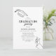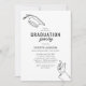 Minimalistiska examensfestinbjudningar med en enkel linjeritning av en manlig examins hand och examenshatt, ett foto på baksidan och en modern textmall som är enkel att anpassa.