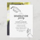 Inbjudningar till minimalistisk studentfest som innehåller en enkel linje teckning av en hand- och gradsockel för manligt student, ett foto på baksidan och en modern textmall som är enkel att anpassa.