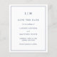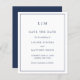Med enkel budget sparar du datumet med en modern utformning av eleganten, med två brev monogram överst och dina bröllop-detaljer omgivna av ett tunt gräns. All design inslag är i marinblått och kan ändras i designredigeringsverktyget i verktyg. En chic och snyggt som är underbar för ett minimalistiskt par.