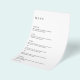 Elegantens svartvit bröllop-meny (tryckt på tunn flygare papper) med enkel och minimal layout. Den lämnat justeringen ge den här klassiska menyn bröllop i ett modernt inslag. En minimal design som är underbar oavsett om du har en avslappnad eller ett traditionellt/formellt bröllop.